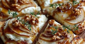 Caramelized Pear Flatbread with Brie, Honey & Toasted Walnuts