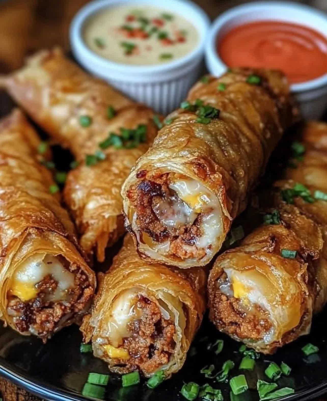 Voodoo Egg Rolls are a bold fusion of Southern Creole flavors wrapped in a crispy Asian-style shell. Think of them as the lovechild of Cajun jambalaya and crunchy takeout egg rolls. Stuffed with spicy andouille sausage, tender chicken, peppers, onions, and gooey cheese, they deliver a satisfying crunch followed by a wave of smoky, spicy, cheesy deliciousness. Dip them into a creamy, fiery dipping sauce, and you’ve got an unforgettable appetizer or party snack!