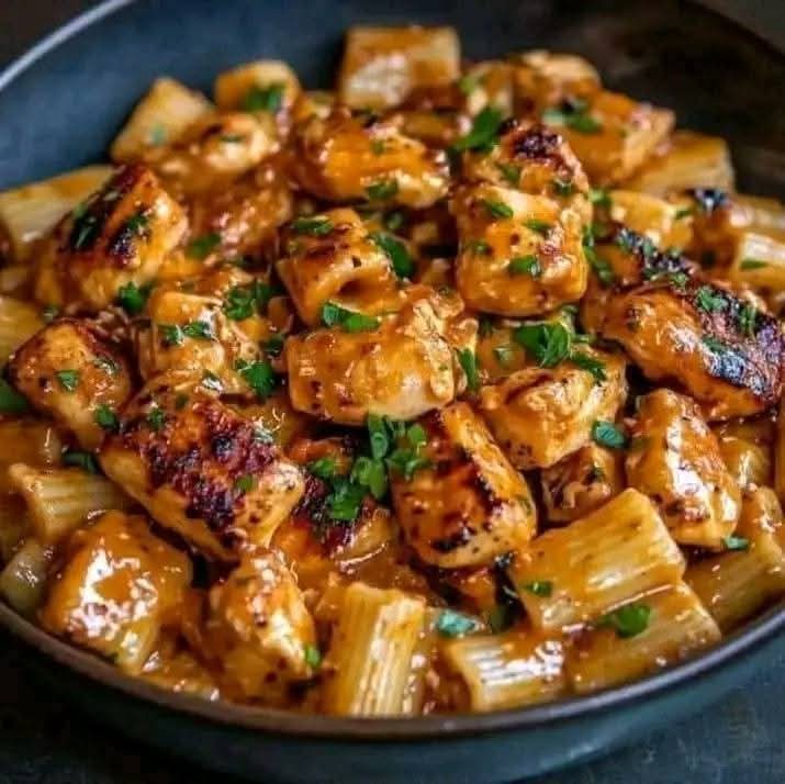 This dish is the ultimate comfort food—a creamy, cheesy pasta featuring golden, pan-seared chicken breasts, rigatoni pasta, and a silky Parmesan sauce. It’s hearty, flavorful, and easy enough to prepare on a weeknight but impressive enough for guests. The rigatoni’s ridges hold onto the sauce beautifully, while the chicken adds a protein-packed, savory contrast.