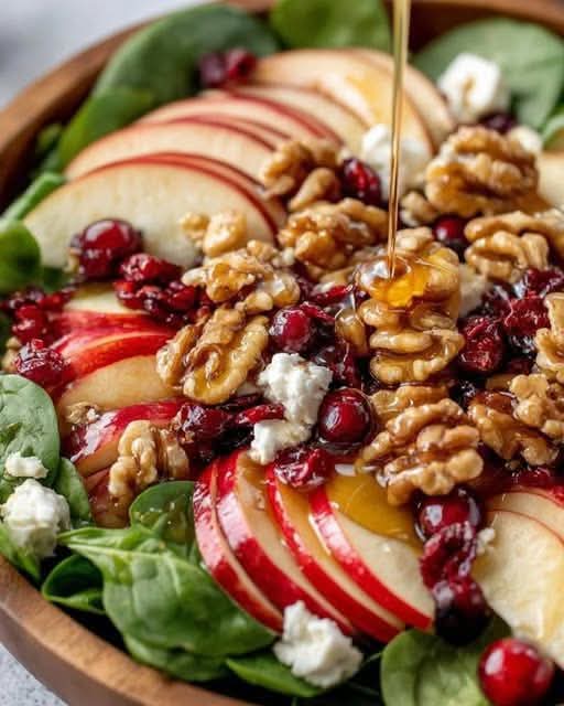 This salad is a vibrant mix of crisp apples, toasted walnuts, tart dried cranberries, and fresh greens, all brought together with a sweet and tangy maple vinaigrette. It’s simple, elegant, and packed with flavor—perfect as a side dish for holiday meals or a light, refreshing lunch.