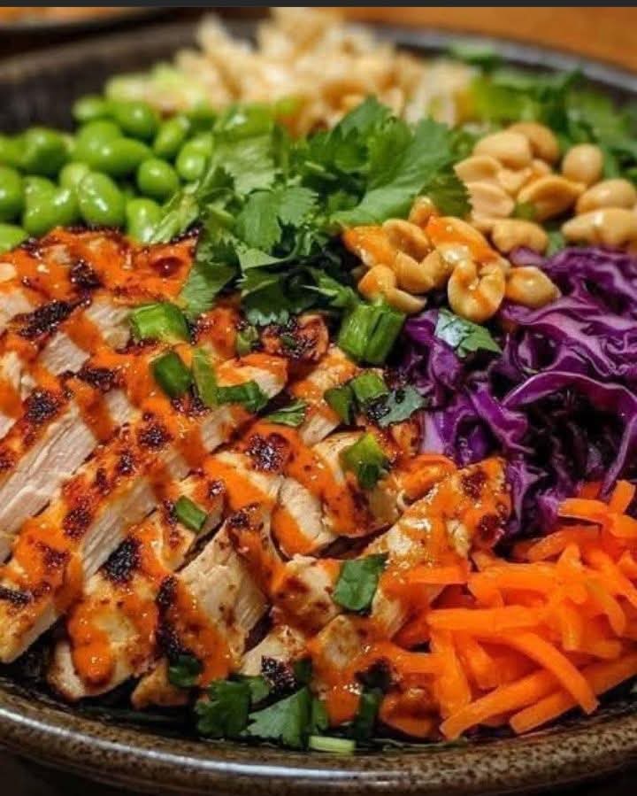 - Garnish with extra sesame seeds, green onions, and optional crushed peanuts or nuts for more crunch.