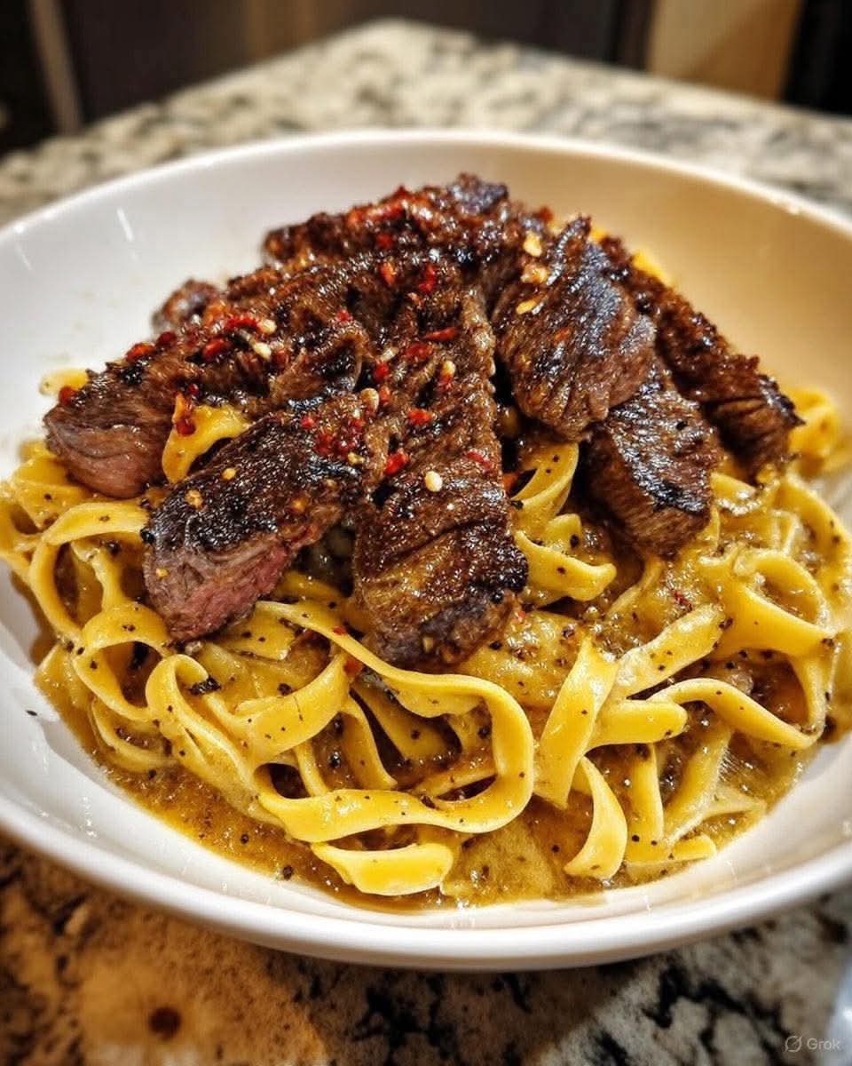 This dish brings together bold Southern flair and Italian indulgence. Tender slices of Cajun-seasoned steak are seared in garlic butter until golden and juicy, then nestled into a bed of creamy, cheesy linguine. A touch of Cajun spice balances the richness of the Parmesan sauce, creating a well-rounded and irresistible pasta dish that will have everyone asking for seconds.
