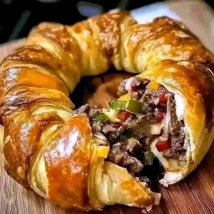 The Philly Cheese Steak Crescent Ring is a fun twist on the classic Philadelphia cheesesteak. By using crescent roll dough, we wrap up the delicious filling of seasoned beef, sautéed onions, peppers, and provolone cheese into a beautiful, golden ring that’s easy to pull apart and serve. It’s crowd-pleasing, flavorful, and surprisingly simple to make!