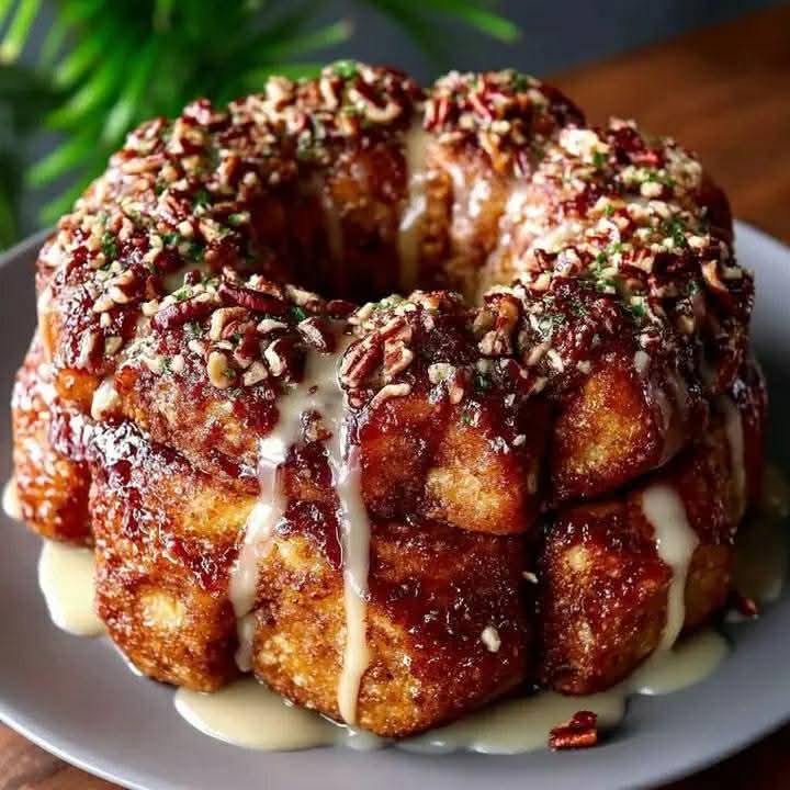 - Drizzle the glaze generously over the warm monkey bread.