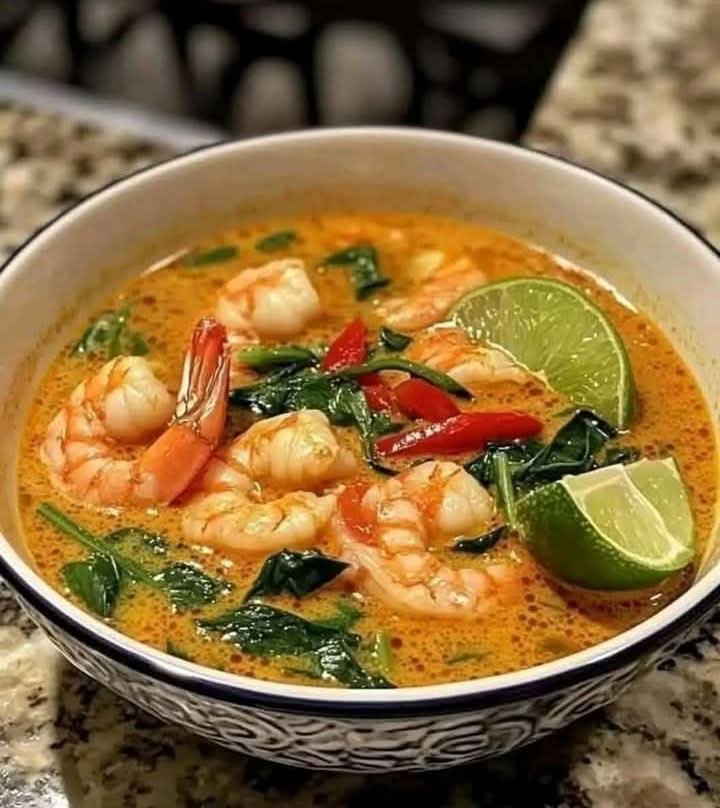 Creamy coconut meets spicy curry, with a touch of tangy lime and a whisper of sweetness — all balanced around juicy, tender shrimp. Every spoonful brings a burst of Southeast Asian warmth.