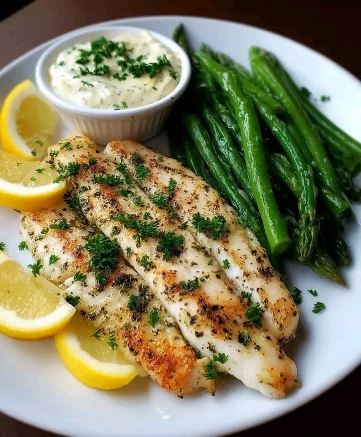 - Serve immediately and enjoy your vibrant, healthy, and delicious Lemon Herb White Fish with Green Beans, Asparagus, and Aioli!