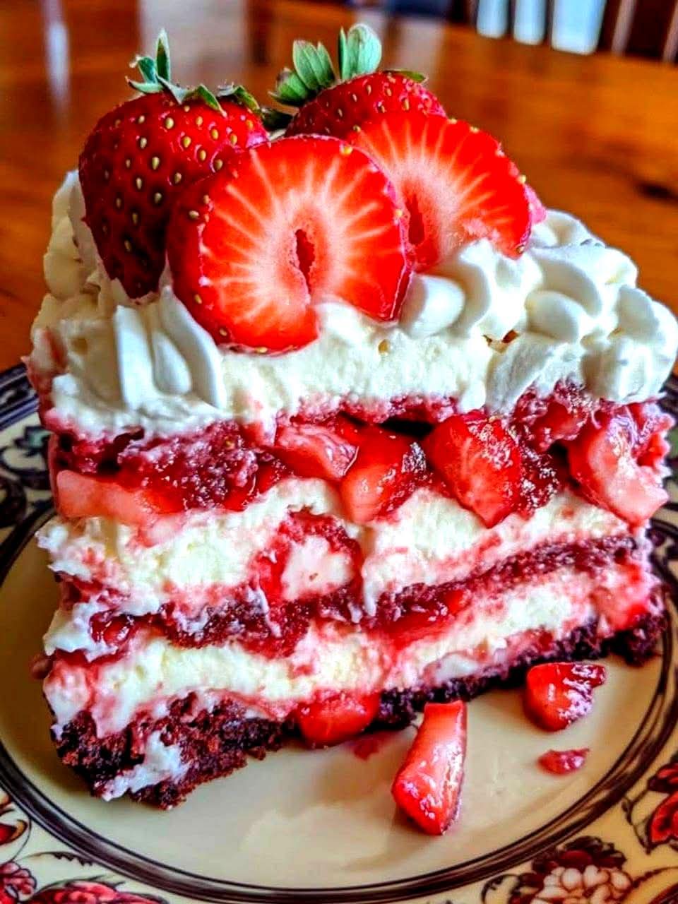 The Strawberry Earthquake Cake is a playful, decadent twist on the classic earthquake cake. It gets its quirky name from the way it “cracks,” swirls, and sinks in places as it bakes—creating pockets of gooey cream cheese, strawberries, and sweet vanilla cake. This dessert is incredibly easy to prepare (no mixer needed!) and looks stunning straight out of the oven. With its blend of fresh strawberries, creamy filling, and moist cake, it’s perfect for spring gatherings, potlucks, or anytime you want an impressive dessert with minimal effort.