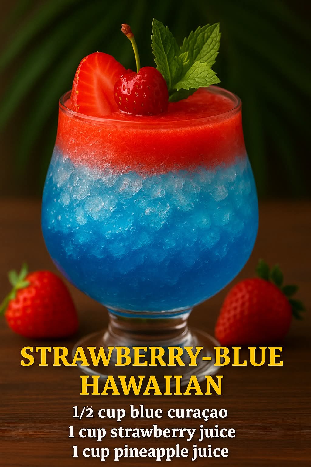 The Strawberry–Blue Hawaiian (Tropical Breeze Version) is a vibrant, island-inspired twist on the classic Blue Hawaiian. Blending juicy strawberries with creamy coconut, sweet pineapple, and a stunning ocean-blue swirl, this drink delivers a refreshing tropical breeze in every sip. It’s perfect for summer parties, beach-themed gatherings, or whenever you want a mini-vacation in a glass.