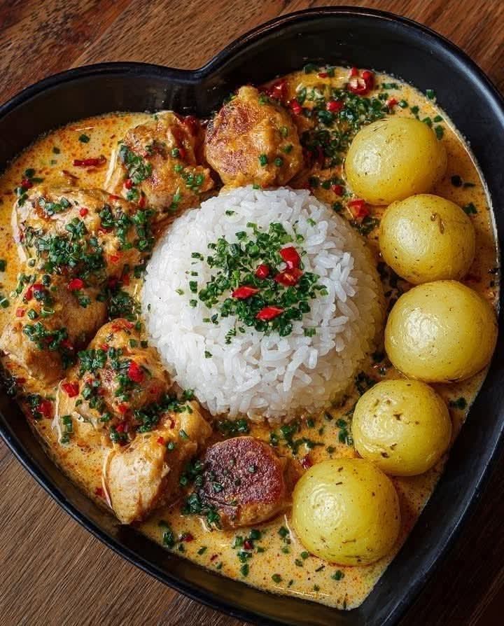 Introduction: Creamy Paprika Chicken with Baby Potatoes and Jasmine Rice is a delicious, comforting dish that combines tender chicken, earthy baby potatoes, and fragrant jasmine rice in a luscious, creamy paprika sauce. This dish is perfect for a cozy dinner, as the rich flavors are both satisfying and aromatic. The smoky heat from the paprika melds perfectly with the creaminess of the sauce, creating a mouthwatering combination. Paired with the nutty sweetness of jasmine rice and the smooth texture of baby potatoes, it makes for a well-rounded meal. Whether you’re cooking for a family or entertaining guests, this dish will leave everyone asking for seconds!