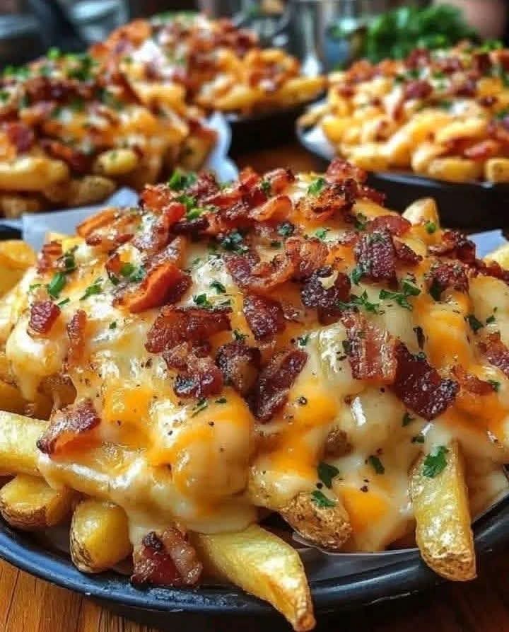 The exact origins of loaded bacon cheese fries are somewhat unclear, but the dish is believed to have roots in American fast-food culture, particularly in diners and pubs in the 1970s and 1980s. It became particularly popular in the United States as a decadent variation of regular fries, influenced by the increasing trend of “loaded” dishes like baked potatoes and nachos. The concept of adding bacon and cheese to fries was a natural evolution, especially with the rise of comfort foods. Today, loaded fries can be found in various forms across the globe, often featuring regional ingredients and adaptations.