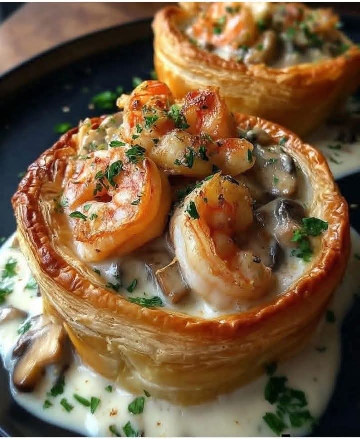 Shrimp & Mushroom Vol-au-Vent is a beautiful blend of texture, flavor, and tradition—crispy pastry, creamy garlic sauce, and tender seafood all in one bite. It’s a timeless dish that never fails to impress.