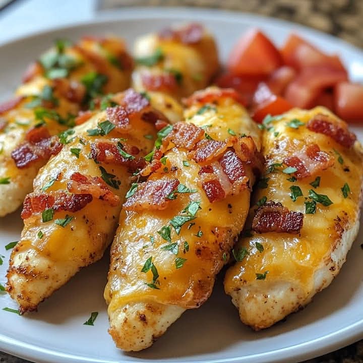 These Crispy Cheddar and Bacon-Coated Chicken Tenders are everything you want in comfort food: juicy chicken on the inside, outrageously crunchy on the outside, and packed with smoky bacon and sharp cheddar flavor in every bite. They’re perfect for weeknight dinners, game day snacks, or when you want to seriously impress with minimal effort. Best of all, they’re baked (not fried!) but still deliver that deep, crispy crunch.