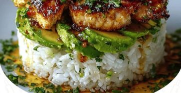 A fresh, vibrant dish combining zesty grilled chicken, creamy avocado, and fragrant rice in a visually stunning stack. 📖 Introduction…