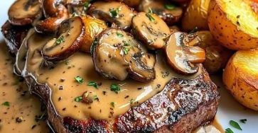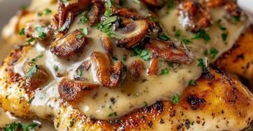 Introduction This hearty and flavorful dish features juicy grilled chicken breasts topped with golden sautéed mushrooms, caramelized onions, and a…