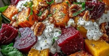 📝 Introduction This vibrant salad combines the earthy sweetness of roasted beets and sweet potatoes with the creamy tang of…