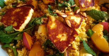 Lemon Couscous with Halloumi, Toasted Almonds & Peach